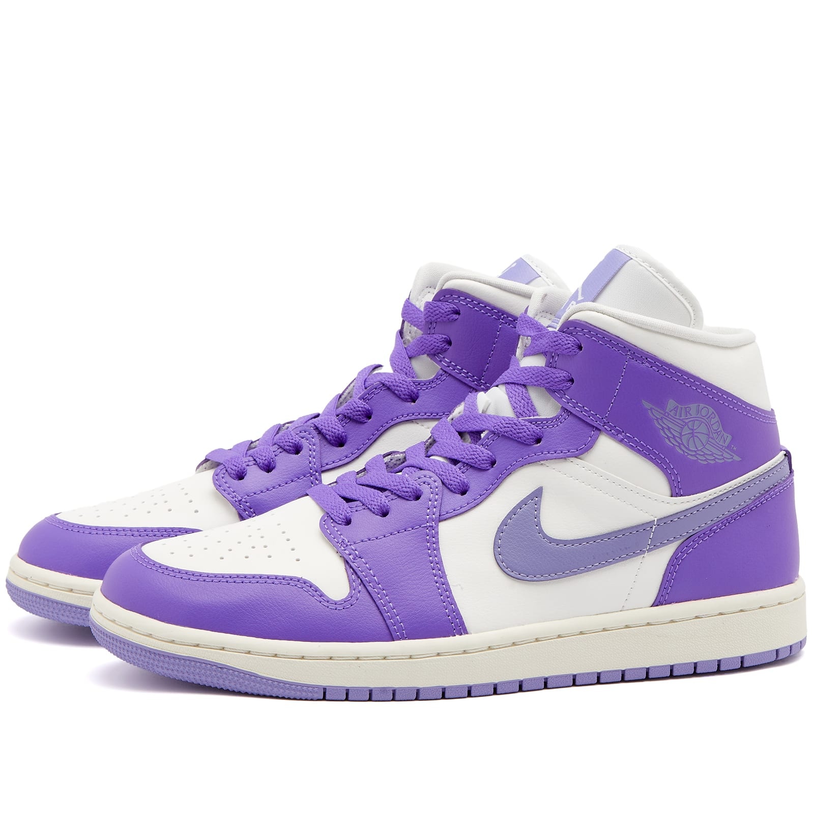 Designed to give more movement on the court, these Air Jordan 1 Mid sneakers have arrived in a juicy grape colourway, making them perfect for transitioning from summer to fall. The smooth leather uppers are elevated with tonal panels and a Swoosh detail. Bolstered with a two-toned rubber sole, these mid-cut sneakers are a must-have for enthusiasts. - 100% Leather Uppers - 100% Rubber Soles - Signature Swoosh Logo - Iconic Air Jordan Wings Logo - Round Toe - Branded Tongue and Insole