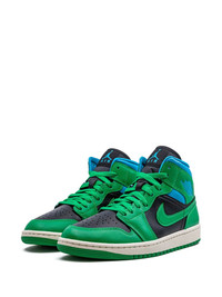 Air Jordan 1 Mid "Lucky Green Aquatone" sneakers The Air Jordan 1 Mid "Lucky Green/Aquatone" is a women’s-exclusive colourway of the lifestyle shoe. This version has a black leather base contrasted with Lucky Green leather overlays and a leather Swoosh logo, while an Aquatone-color collar adds more colour. Highlights - Green/blue/black - Calf leather - Signature swoosh logo detail - Signature air jordan wings logo - Round toe - Front lace-up fastening - Logo patch at the tongue - Branded insole - Rubber sole - Release date: april 11, 2023 - These styles are supplied by a premium sneaker marketplace. stocking only the most sought-after footwear, they source and curate some of the most hard to find sneakers from around the world. Imported Composition Leather 100% SIZE & FIT FittingInformation This piece fits small – take one size up