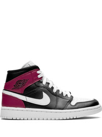 Air Jordan 1 Mid "Noble Red" sneakers Keep your kicks cool. The Air Jordan 1 Mid gets a sleek look in black, red and white leather. Bang on trend. Featuring a lace-up front fastening, a signature Nike swoosh, a round toe and a ridged rubber sole. Imported Composition Calf Leather 100% SIZE & FIT FittingInformation This piece fits small – take one size up