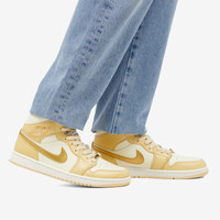 Air Jordan 1 Mid SE silhouettes gets a fresh reboot with this pale vanilla and metallic gold iteration. Balancing neutral shades with metallic accents, this luxurious design boasts the usual clean-cut leather uppers - while the OG Jordan Wings receives a metallic treatment at the sidewall. Rounded together using that ever iconic Jumpman silhouette at the tongue and heel, this ‘85 icon is instantly transformed into a contemporary classic that you’ll return to season after season. - Leather Uppers - Rubber Outsole