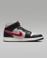 The Air Jordan 1 Mid brings full-court style and premium comfort to an iconic look. Its Air-Sole unit cushions play on the hardwood, while the padded collar gives you a supportive feel. Benefits - Premium leather and synthetic upper provides durability, comfort and support. - Air-Sole unit in the heel delivers signature cushioning. - Rubber outsole offers traction on a variety of surfaces. Product Details - Shown: Black/College Grey/Sail/Gym Red - Style: BQ6472-060