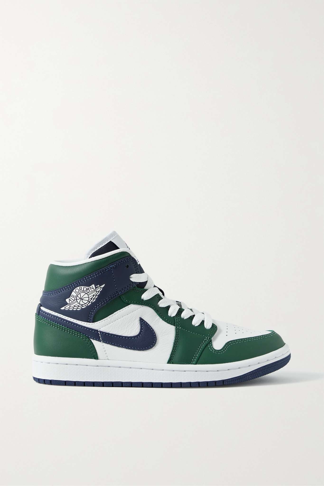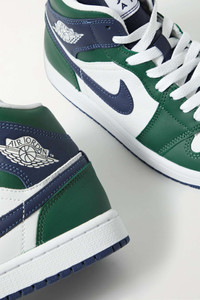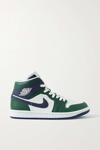 EDITORS'NOTES Nike's special edition 'Air Jordan 1' sneakers pay homage to the style's '80s roots. Made from supple leather and constructed in a 'Mid' silhouette, they have embroidered logos and gripped rubber soles. SIZE & FIT Nike follows its own size guide, please refer to below: - US 5 = UK 2.5/ EU 35.5 - US 5.5 = UK 3/ EU 36 - US 6 = UK 3.5/ EU 36.5 - US 6.5 = UK 4/ EU 37.5 - US 7 = UK 4.5/ EU 38 - US 7.5 = UK 5/ EU 38.5 - US 8 = UK 5.5/ EU 39 - US 8.5 = UK 6/ EU 40 - US 9 = UK 6.5/ EU 40.5 - US 9.5 = UK 7/ EU 41 - US 10 = UK 7.5/ EU 42 - US 10.5 = UK 8/ EU 42.5 - US 11 = UK 8.5/ EU 43 - US 11.5 = UK 9/ EU 44 - US 12 = UK 9.5/ EU 44.5 - Fits true to size, take your normal size DETAILS & CARE - Rubber sole measures approximately 20mm/ 1 inch - Navy, army-green and white leather - Lace-up front - Designer color: Noble Green/ Midnight Navy - Nike follows its own size guide, therefore the size stated on the box will differ from the one provided in our size chart. To receive your correct fit, please refer to Size & Fit notes
