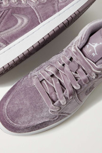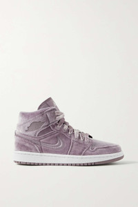 EDITORS'NOTES Nike's special edition 'Air Jordan 1' sneakers pay homage to the style's '80s roots. Made from plush velvet and constructed in a 'Mid' silhouette, they have embroidered logos and gripped rubber soles. SIZE & FIT Nike follows its own size guide, please refer to below: - US 5 = UK 2.5/ EU 35.5 - US 5.5 = UK 3/ EU 36 - US 6 = UK 3.5/ EU 36.5 - US 6.5 = UK 4/ EU 37.5 - US 7 = UK 4.5/ EU 38 - US 7.5 = UK 5/ EU 38.5 - US 8 = UK 5.5/ EU 39 - US 8.5 = UK 6/ EU 40 - US 9 = UK 6.5/ EU 40.5 - US 9.5 = UK 7/ EU 41 - US 10 = UK 7.5/ EU 42 - US 10.5 = UK 8/ EU 42.5 - US 11 = UK 8.5/ EU 43 - US 11.5 = UK 9/ EU 44 - US 12 = UK 9.5/ EU 44.5 - Fits true to size, take your normal size DETAILS & CARE - Rubber sole measures approximately 30mm/ 1 inch - Lilac velvet - Lace-up front - Nike follows its own size guide, therefore the size stated on the box will differ from the one provided in our size chart. To receive your correct fit, please refer to Size & Fit notes