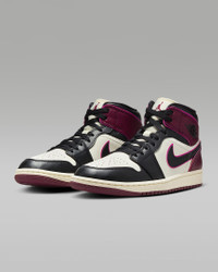 Step into your glow up. This updated AJ1 Mid pairs vibrant neon-like accents with textured leather for premium style. Of course, we kept the classic Air cushioning underfoot, giving you a fresh look with a familiar feel. Benefits - Real and synthetic leather in the upper offers durability and structure. - Encapsulated Nike Air unit provides lightweight cushioning. - Rubber outsole helps give you traction on various surfaces. Product Details - Wings logo on collar - Jumpman on tongue - Shown: Sail/Active Pink/Bordeaux/Black - Style: FQ7818-101