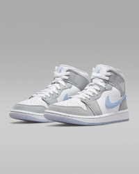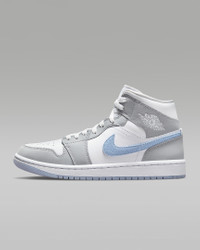 The Air Jordan 1 Mid brings full-court style and premium comfort to an iconic look. Its Air-Sole unit cushions play on the hardwood, while the padded collar gives you a supportive feel. Benefits - Premium leather and synthetic upper provides durability, comfort and support. - Air-Sole unit in the heel delivers signature cushioning. - Rubber outsole offers traction on a variety of surfaces. Product Details - Shown: White/Wolf Grey/Aluminum - Style: BQ6472-105