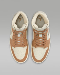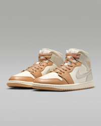 The Air Jordan 1 Mid brings full-court style and premium comfort to an iconic look. Its Air-Sole unit cushions play on the hardwood, while the padded collar gives you a supportive feel. Benefits - Premium leather and synthetic upper provides durability, comfort and support. - Air-Sole unit in the heel delivers signature cushioning. - Rubber outsole offers traction on a variety of surfaces. Product Details - Shown: Pale Ivory/Hemp/Sail/Light Orewood Brown - Style: BQ6472-118