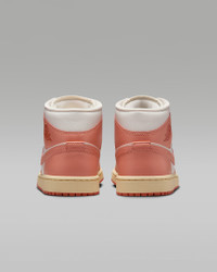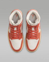 The Air Jordan 1 Mid brings full-court style and premium comfort to an iconic look. Its Air-Sole unit cushions play on the hardwood, while the padded collar gives you a supportive feel. Benefits - Premium leather and synthetic upper provides durability, comfort and support. - Air-Sole unit in the heel delivers signature cushioning. - Rubber outsole offers traction on a variety of surfaces. Product Details - Shown: Sail/Madder Root/Muslin/Light Madder Root - Style: BQ6472-180