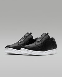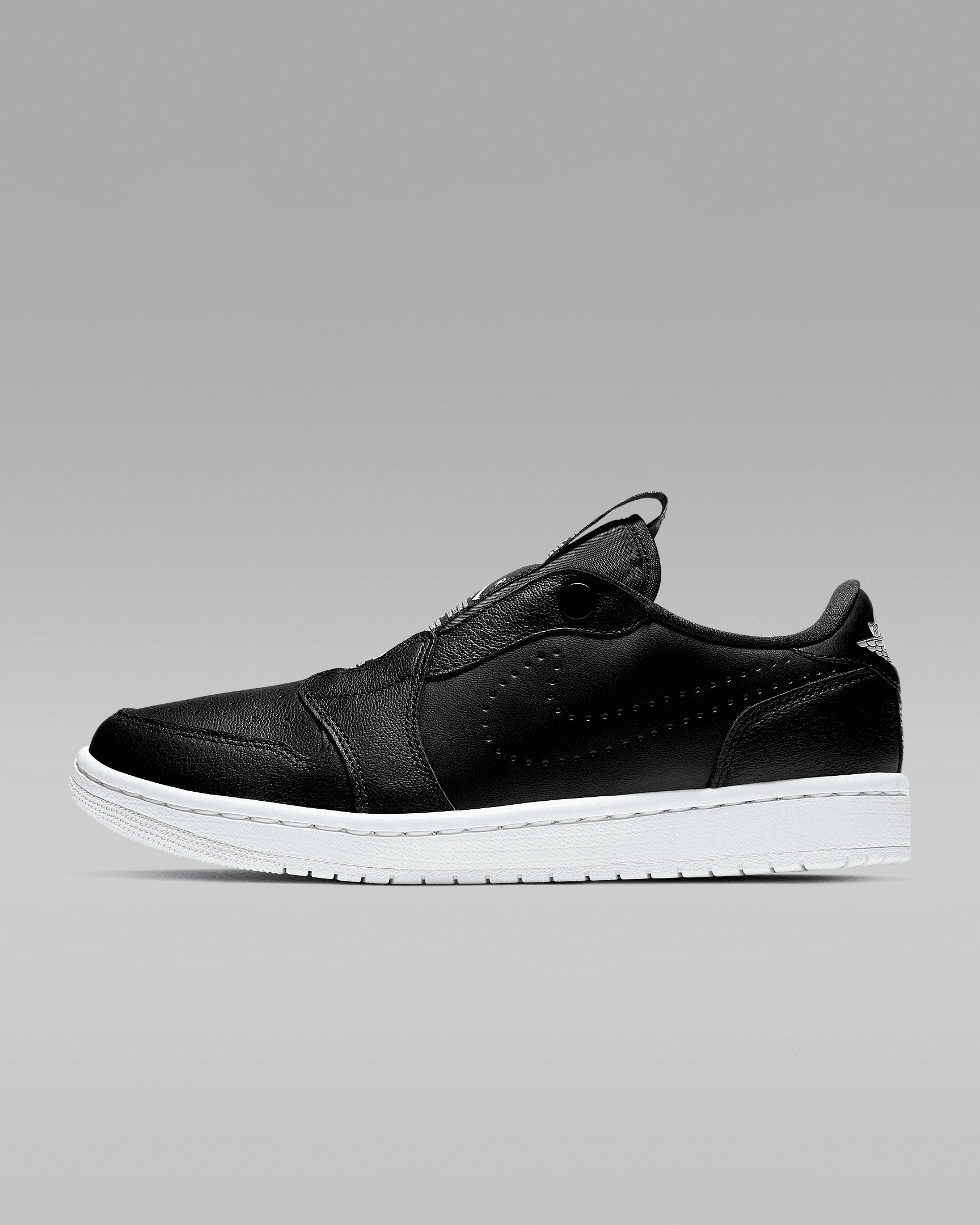 Slip on a legend with the Air Jordan 1 Retro Low Slip. Its laceless design has an easy snap-button closure, while a lightweight foam midsole with an Air-Sole unit gives you that all-day comfort on the go. Benefits - Laceless design has a button-snap tongue for easy on and off. - Encapsulated Air-Sole unit in the heel enhances cushioning. - Elongated tongue label is inspired by the original Air Jordan. - Foam midsole gives you a cushioned ride. - Solid rubber outsole provides durability and traction. Product Details - Shown: Black/White - Style: AV3918-001