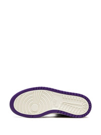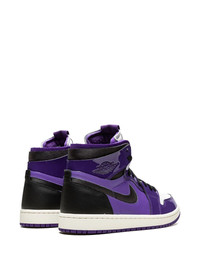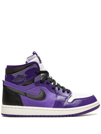 Air Jordan 1 High Zoom CMFT "Purple Patent" sneakers This updated version of the Air Jordan 1 features a glossy purple patent or acrylic featured on the toe-box, quarter, lace collar, and ankle, while a matte tumbled leather appears at the mid-foot. Black is utilized at the heel and inner ankle for some contrast, while a white toe-box creates that OG-style flavour. Underneath, the outsole boasts a purple hue at its border, with white on its insides. Highlights - Black/purple/white - Leather - Signature air jordan wings logo - Signature swoosh logo detail - Contrasting panel detail - Round toe - Front lace-up fastening - Logo patch at the tongue - Ankle-length - Branded insole - Rubber sole - These styles are supplied by a premium sneaker marketplace. stocking only the most sought-after footwear, they source and curate some of the most hard to find sneakers from around the world. Imported Composition Leather 100% SIZE & FIT FittingInformation This piece fits small – take one size up