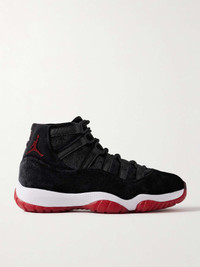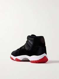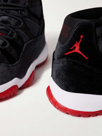 EDITORS'NOTES Nike's 'Air Jordan 11' sneakers are one of the line's most coveted styles - so much so, that a new pair has dropped every year since 2008. This 'Retro High OG' version is made from plush black velvet and has red accents, including the iconic 'Jumpman' logo and chunky rubber soles. SIZE & FIT Fits true to size, please refer to Nike size guide below: - US 5 = UK 2.5/ EU 35.5 - US 5.5 = UK 3/ EU 36 - US 6 = UK 3.5/ EU 36.5 - US 6.5 = UK 4/ EU 37.5 - US 7 = UK 4.5/ EU 38 - US 7.5 = UK 5/ EU 38.5 - US 8 = UK 5.5/ EU 39 - US 8.5 = UK 6/ EU 40 - US 9 = UK 6.5/ EU 40.5 - US 9.5 = UK 7/ EU 41 - US 10 = UK 7.5/ EU 42 - US 10.5 = UK 8/ EU 42.5 - US 11 = UK 8.5/ EU 43 - US 11.5 = UK 9/ EU 44 - US 12 = UK 9.5/ EU 44.5 DETAILS & CARE - Heel measures approximately 40mm/ 1.5 inches - Black velvet - Lace-up front - Nike follows its own size guide, therefore the size stated on the box will differ from the one provided in our size chart. To receive your correct fit, please refer to Size & Fit notes