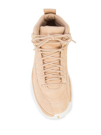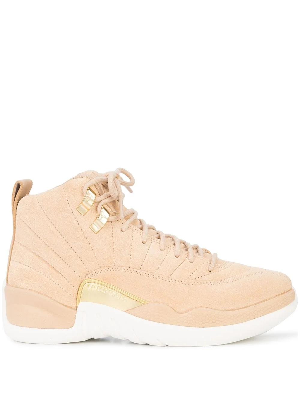 Air Jordan 12 Retro "Vachetta Tan" sneakers Originally released in 1996, Nike's Air Jordan XII sneakers are presented for the new season in a light tan brown colourway. Designed by iconic Nike designer Tinker Hatfield, the Air Jordan XII sneakers featured signature stitching to each outer wall which was inspired by the Rising Sun of Japan. Set atop a white rubber outsole complete with gold logo embossed paneling, the hi-top design boasts a premium suede upper with tonal waxed laces, an embossed logo at the tongue, a pull tab at the heel and a padded ankle. Imported Composition Leather 100%, Rubber 100% SIZE & FIT Measurement Sole height 1.18 in(3 cm) HEIGHT 3.14 in(8 cm)