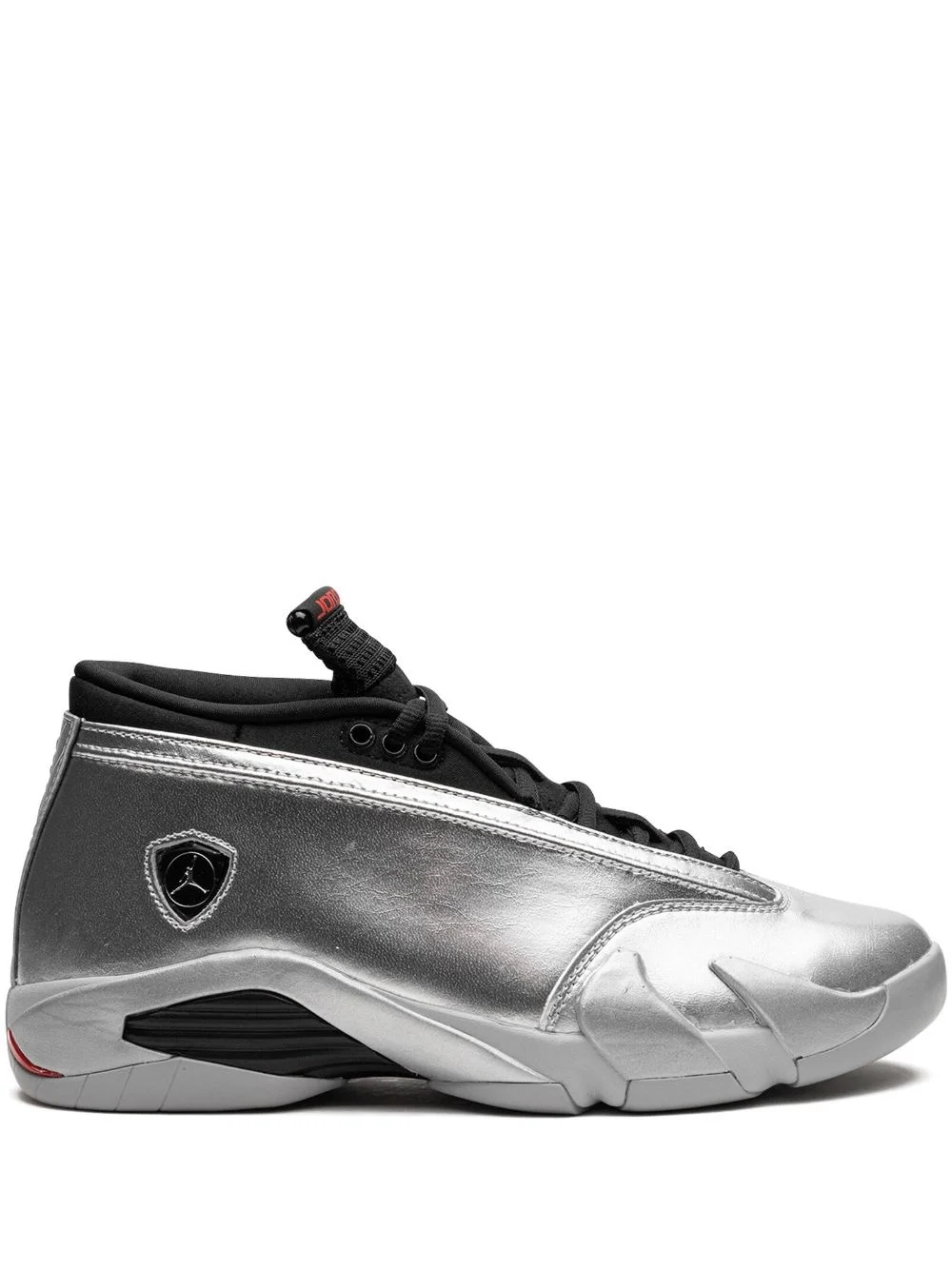 Air Jordan 14 Low "Metallic Silver" sneakers This original colourway of the Air Jordan 14 Low is an eye-catching version of the sneakers Michael Jordan wore in the game, giving him the sixth ring of his career. Known as the most comfortable Jordans ever, the look is presented in 'Metallic Silver' and adorned with textured leather. A 'Fire Red' pop can be seen on the soles and tongue of this addition to the Air Jordan retro family. Highlights - Silver/black - Metallic effect - Leather - Logo-print tongue - Embossed logo to the rear - Signature jumpman motif - Front lace-up fastening - Round toe - Rubber sole - These styles are supplied by a premium sneaker marketplace. stocking only the most sought-after footwear, they source and curate some of the most hard to find sneakers from around the world. Imported Composition Leather 100%