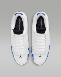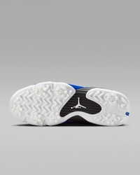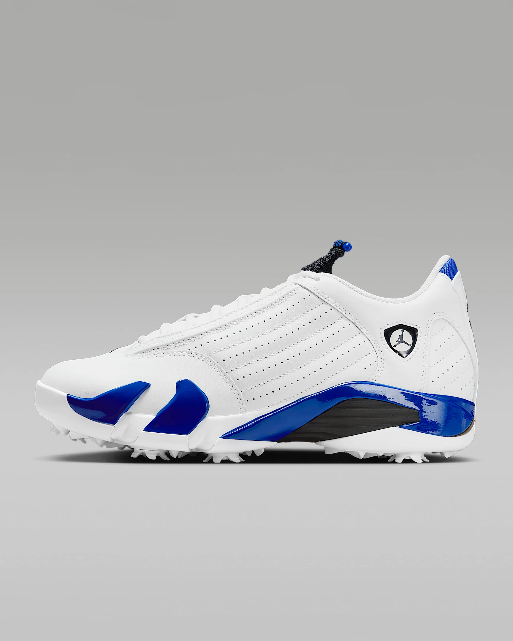 A timeless classic remixed for the course—meet the Air Jordan 14 G. Air Zoom units in the forefoot and heel help provide comfortable cushioning for every swing and step. For support and traction, we stabilized the midsole and added seven removable spikes to the outsole plate. Product Details - Shown: White/Hyper Royal/Black - Style: HJ7710-101