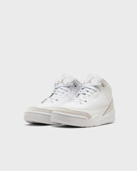 The Air Jordan 3 'Pure Money' returns in a clean colorway. The white leather upper features elephant print overlays and metallic silver details. The padded collar and Nike Air cushioning provide style as well as optimal comfort. - Genuine and synthetic leather offer a durable, supportive feel - Foam midsole with Air-Sole unit in the heel and forefoot for road-ready cushioning - The rubber outsole offers durability and traction Article number: DM0966-111 Gender: men,women,kids Color: WHITE/METALLIC SILVER-WHITE Material: 30% Rubber, 70% Leather