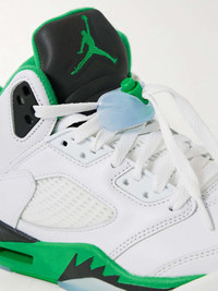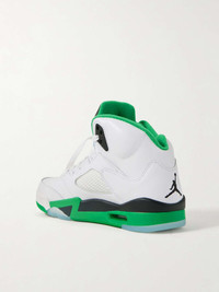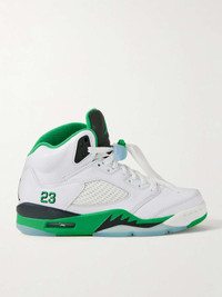 EDITORS'NOTES Nike's 'Air Jordan 5 Retro' sneakers are the third installment in the brand's 'Lucky Green' series - here, the color is seen highlighting the lining, rubber sole and '23' embroidery on the heel. They're made from panels of leather and have toggles to easily adjust the laces. Complement the high-top design with cropped pants. SIZE & FIT Fits true to size, please refer to Nike size guide below: - US 5 = UK 2.5/ EU 35.5 - US 5.5 = UK 3/ EU 36 - US 6 = UK 3.5/ EU 36.5 - US 6.5 = UK 4/ EU 37.5 - US 7 = UK 4.5/ EU 38 - US 7.5 = UK 5/ EU 38.5 - US 8 = UK 5.5/ EU 39 - US 8.5 = UK 6/ EU 40 - US 9 = UK 6.5/ EU 40.5 - US 9.5 = UK 7/ EU 41 - US 10 = UK 7.5/ EU 42 - US 10.5 = UK 8/ EU 42.5 - US 11 = UK 8.5/ EU 43 - US 11.5 = UK 9/ EU 44 - US 12 = UK 9.5/ EU 44.5 DETAILS & CARE - Rubber sole measures approximately 35mm/ 1.5 inches - White and black leather, white rubber - Lace-up front - Designer color: White/ Lucky Green/ Black/ Ice Blue - Nike follows its own size guide, therefore the size stated on the box will differ from the one provided in our size chart. To receive your correct fit, please refer to Size & Fit notes
