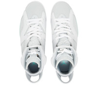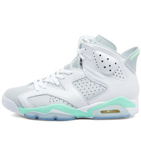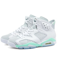 Feel the history behind each of Michael Jordan's championship wins in the latest release of the Air Jordan 6 Retro. Dressed in icy white mesh with smooth leather overlays, the women’s exclusive features hints of minty blue on the tongue, heel and midsole - a nod to the signature colourway of New York-based jewellery giant, Tiffany & Co. Cut high on the ankle, this supportive pair is detailed with perforated sidewalls, a metallic lace toggle system and that all-important Jumpman logo embroidered at the heel. Further down, a translucent rubber outsole encases the visible Air-Sole unit, which ensures bounce with every step. - Mesh Uppers - Leather & Suede Overlays - Air-Sole Unit - Translucent Rubber Outsole - Lace Toggles - Style Code: DQ4914-103