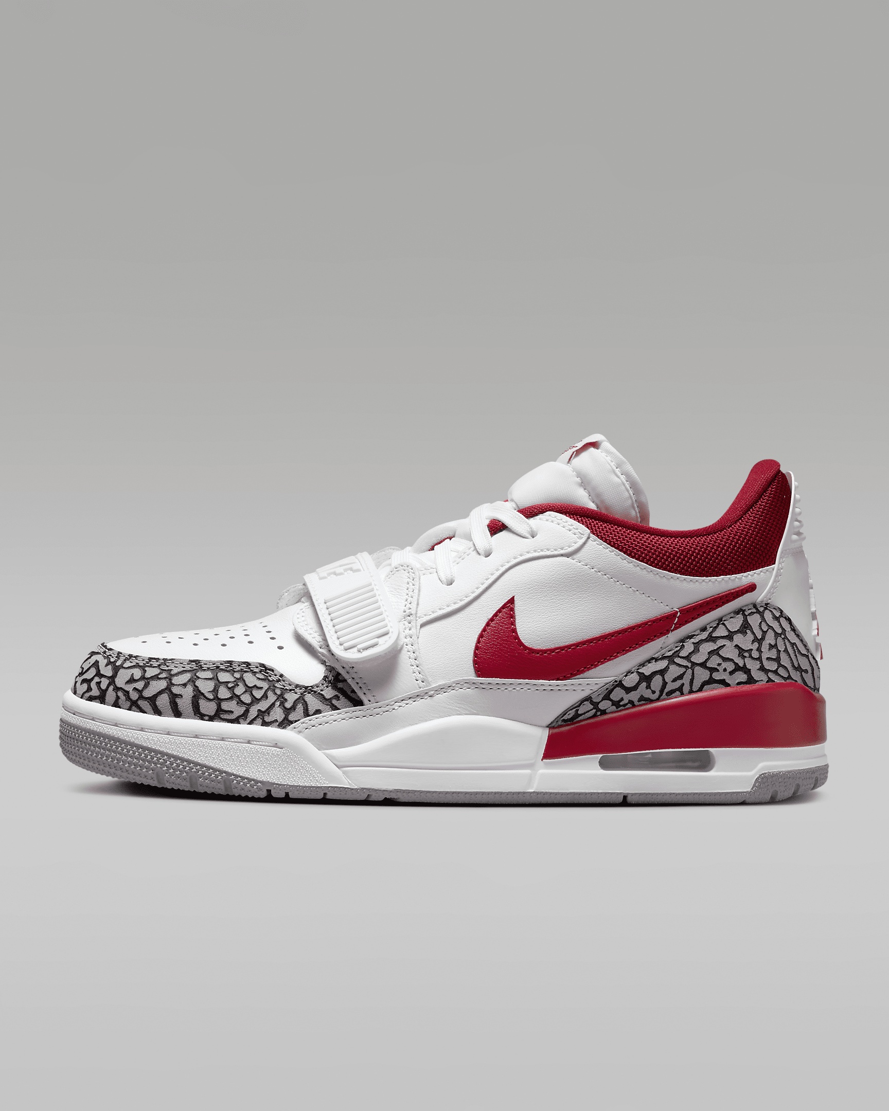 Who doesn't love a good mash-up? Taking elements from the AJ1, AJ3 and the Nike Air Alpha Force, these kicks encompass the best of the best. Iconic details (check out that elephant print and midfoot strap) honor MJ's time in Chicago's 312 area code. With premium materials and Nike Air cushioning, this is the beginning of a whole new legacy. Benefits - Real and synthetic leather in the upper offers durability and structure. - Midfoot strap adds bold branding and helps secure your fit. - Visible Nike Air unit in the heel helps provide comfortable cushioning. - Rubber sole has a full cupsole stitch for exceptional durability. - Rubber in the outsole helps give you traction on various surfaces. Product Details - Shown: White/Cement Grey/Black/Gym Red - Style: FQ7827-106