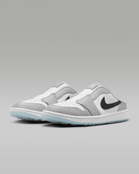 Slide into pre- and post-match paradise, whether you’re sailing to the 19th hole after a career low or ramping up for the round ahead in the all-new Jordan 1 G Mule. It’s easily accessible, eye-popping eccentric and complete with timeless Jordan ethos and comfort. More Benefits - Full-grain leather is pierced with small holes for better breathability. - The sticky outsole gives you great grip on the journey to and from the course. Product Details - Shown: Wolf Grey/Sail/Photon Dust/Black - Style: FJ1214-004