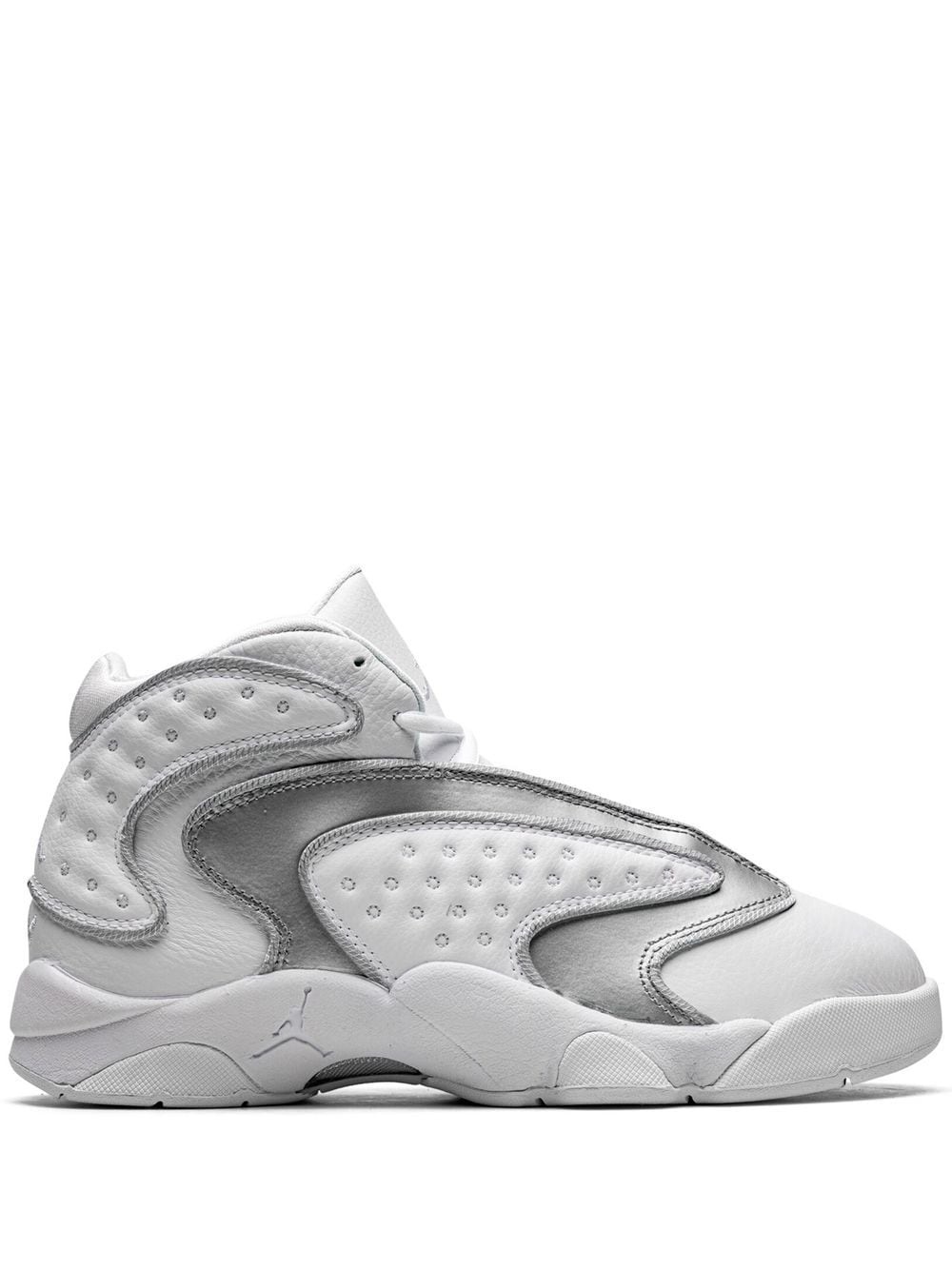 Air Jordan OG "White/Metallic Silver" sneakers First presented in 1985, Michael Jordan's Air Jordan silhouette has become one of the most prominent winners in sneaker history. This model, made of durable leather, updates the original silhouette with white and silver-tone panels for a bold design. Imported Composition Outer: Calf Leather 100% Sole: Rubber 100% Lining: Fabric 100%
