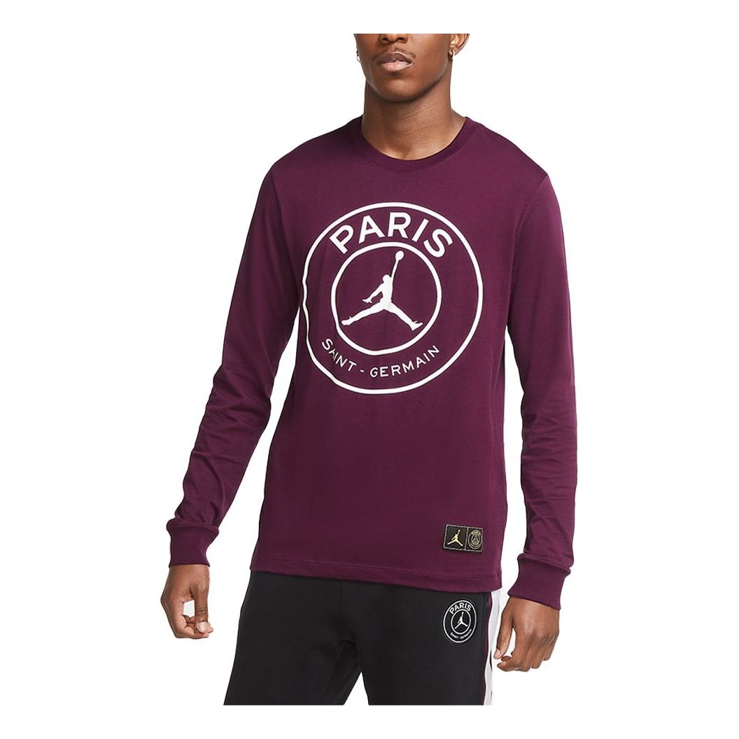 Air Jordan Paris Saint-Germain Round Neck Solid Color Alphabet Long Sleeves Red CK9782-610