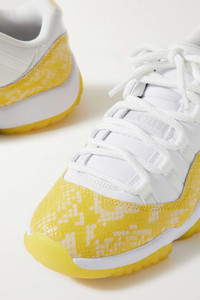 EDITORS'NOTES Nike's 'Air Jordan Retro 11' sneakers are made from panels of smooth neoprene with tonal-yellow snake-effect leather tracing the rubber sole. Detailed with a padded tongue and collar for comfort, they feature the signature 'Jumpman' logo at the heel. SIZE & FIT Nike follows its own size guide, please refer to below: - US 5 = UK 2.5/ EU 35.5 - US 5.5 = UK 3/ EU 36 - US 6 = UK 3.5/ EU 36.5 - US 6.5 = UK 4/ EU 37.5 - US 7 = UK 4.5/ EU 38 - US 7.5 = UK 5/ EU 38.5 - US 8 = UK 5.5/ EU 39 - US 8.5 = UK 6/ EU 40 - US 9 = UK 6.5/ EU 40.5 - US 9.5 = UK 7/ EU 41 - US 10 = UK 7.5/ EU 42 - US 10.5 = UK 8/ EU 42.5 - US 11 = UK 8.5/ EU 43 - US 11.5 = UK 9/ EU 44 - US 12 = UK 9.5/ EU 44.5 - Fits true to size, take your normal size DETAILS & CARE - Rubber sole measures approximately 30mm/ 1 inch - White neoprene, tonal-yellow snake-effect leather (Cow) - Lace-up front - Nike follows its own size guide, therefore the size stated on the box will differ from the one provided in our size chart. To receive your correct fit, please refer to Size & Fit notes