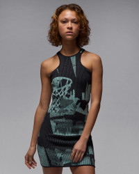 MJ's '85 dunk is worked right into the ribbed jacquard of this tight-fitting, structured knit dress for a standout, energetic look. Air Jordan embroidery keeps the style streamlined and minimalistic. Product Details - 49% polyester/47% cotton/4% spandex - Machine wash - Imported - Shown: Mineral - Style: HJ0016-309 SIZE & FIT Model is wearing size S and is 5′9″175cm Tight fit: snug and form-fitting
