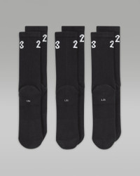 The Jordan Essentials Crew Socks are soft and stretchy, with a supportive fit and knit-in cushioning underfoot. 3 pairs set you up for nearly half the week. Benefits - Sweat-wicking technology helps you stay dry and comfortable. - Knit-in cushioning adds softness underfoot. - Arch band offers a snug, secure fit. Product Details - Ribbed leg structure - Knit-in graphics - 65% cotton/31% polyester/3% polyurethane/1% nylon - Machine wash - Imported - Shown: Black/White - Style: DA5718-010