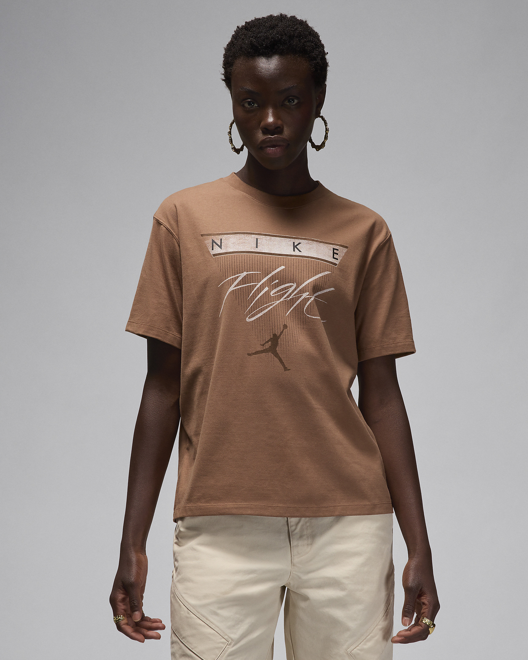 You already know the vibe. An absolutely classic graphic on a relaxed tee with a slightly boxy cut. That's all you need. Product Details - Jumpman screen print on sleeve - 100% cotton - Machine wash - Imported - Shown: Archaeo Brown - Style: FQ3240-223 SIZE & FIT Model is wearing size S and is 5′11″180cm Loose fit: roomy and relaxed