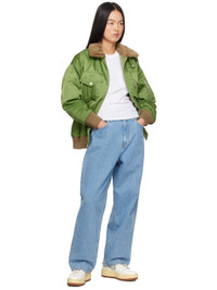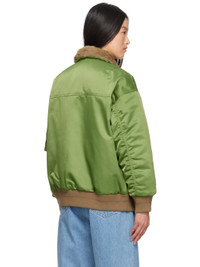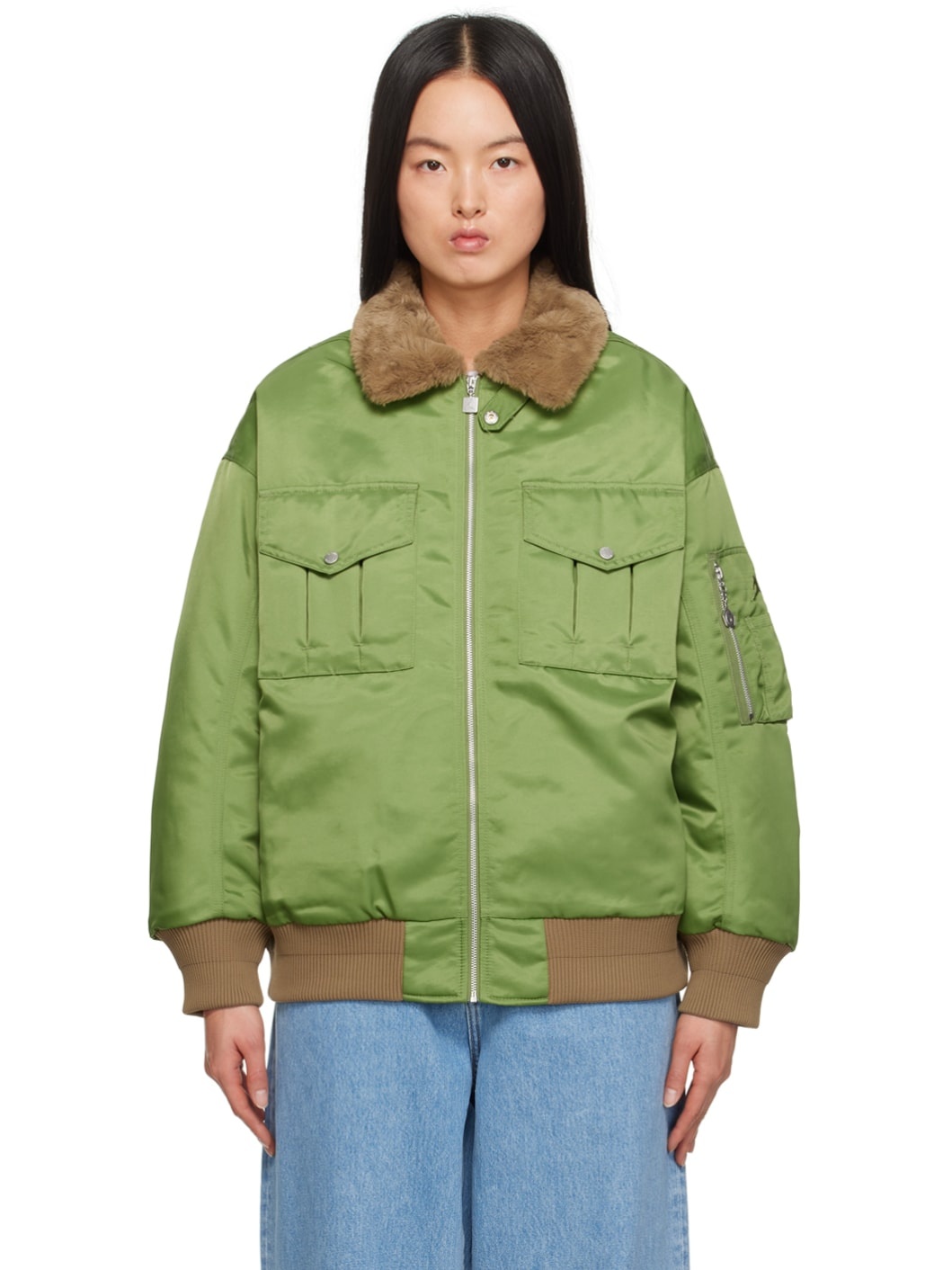 Insulated polyester sateen bomber jacket. · Press-stud tab at fleece spread collar · Zip closure · Flap pockets · Rib knit hem and cuffs · Dropped shoulders · Logo embroidered at sleeve · Utility pocket at sleeve · Full quilted sateen lining Please note that this item may be shipped only within North America. Supplier color: Sky J light olive/Brown