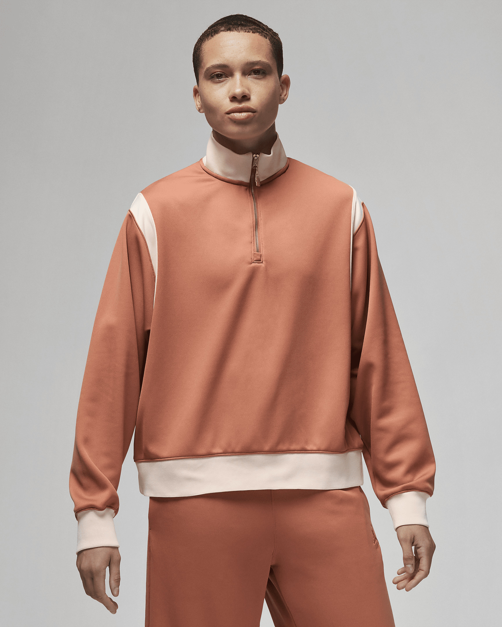 Take your 'fit to new heights with the updated Jordan Flight Suit, styled as versatile separates or one cohesive look. Designed to hit just below the waist, the quarter-zip top has heritage design lines and rib-knit details that are sure to stand out in your closet. The zipper pull features a removable "23" charm—add it to a chain, bracelet or even your shoes. Benefits - Double-knit material is sport inspired with a soft touch. - Design lines at the shoulders are inspired by the Air Jordan Wings, an integral part of our DNA. Product Details - Jordan branded metal zipper pull - Embroidered Jordan Flight branding - Rib knit collar, cuffs and waistband - 100% polyester - Machine wash - Imported - Shown: Sky J Orange/Guava Ice - Style: FB5134-810 SIZE & FIT Model is wearing size S and is 5′10″178cm Loose fit: roomy and relaxed