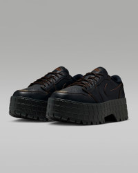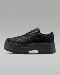 Luxe full-grain leather combines with a chunky platform to pump up your personal style. Exaggerated outsole lugs and Nike Air cushioning support your every step. And don't sleep on the AJ1 DNA: A diamond inset on the heel displays Jumpman insignia, grounding your look in hoops heritage. Benefits - Genuine full-grain leather in the upper gives you a premium look and feel. - Nike Air in the heel helps cushion every step. - Foam midsole helps add soft, supportive cushioning. - Perforated toe box lets your foot breathe. - Elevated lugged rubber outsole adds height and extra comfort. Product Details - Shown: Black/Black/Cacao Wow - Style: HF3184-002