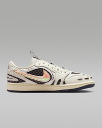 Our latest Method of Make series takes the instantly recognizable AJ1 and infuses it with serious tech runner style. Luxurious metallic leather pairs with breezy textile panels to create a richly layered design. A puffy Nike Swoosh logo sits on top of it all, rounding out the '00s running style. Benefits - Real and synthetic leather offer durability and structure. - Nike Air technology absorbs impact for cushioning with every step. - Soft foam midsole helps provide lightweight cushioning. - Rubber outsole adds durable traction. Product Details - Wings logo on heel - Stitched-down Swoosh logo - Shown: Sail/Coconut Milk/Anthracite/Metallic Silver - Style: HQ2186-100