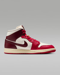 The Air Jordan 1 Mid brings full-court style and premium comfort to an iconic look. Its Air-Sole unit cushions play on the hardwood, while the padded collar gives you a supportive feel. Benefits - Premium leather and synthetic upper provides durability, comfort and support. - Air-Sole unit in the heel delivers signature cushioning. - Rubber outsole offers traction on a variety of surfaces. Product Details - Shown: Sail/Mystic Hibiscus/Coconut Milk/Dark Team Red - Style: BQ6472-119