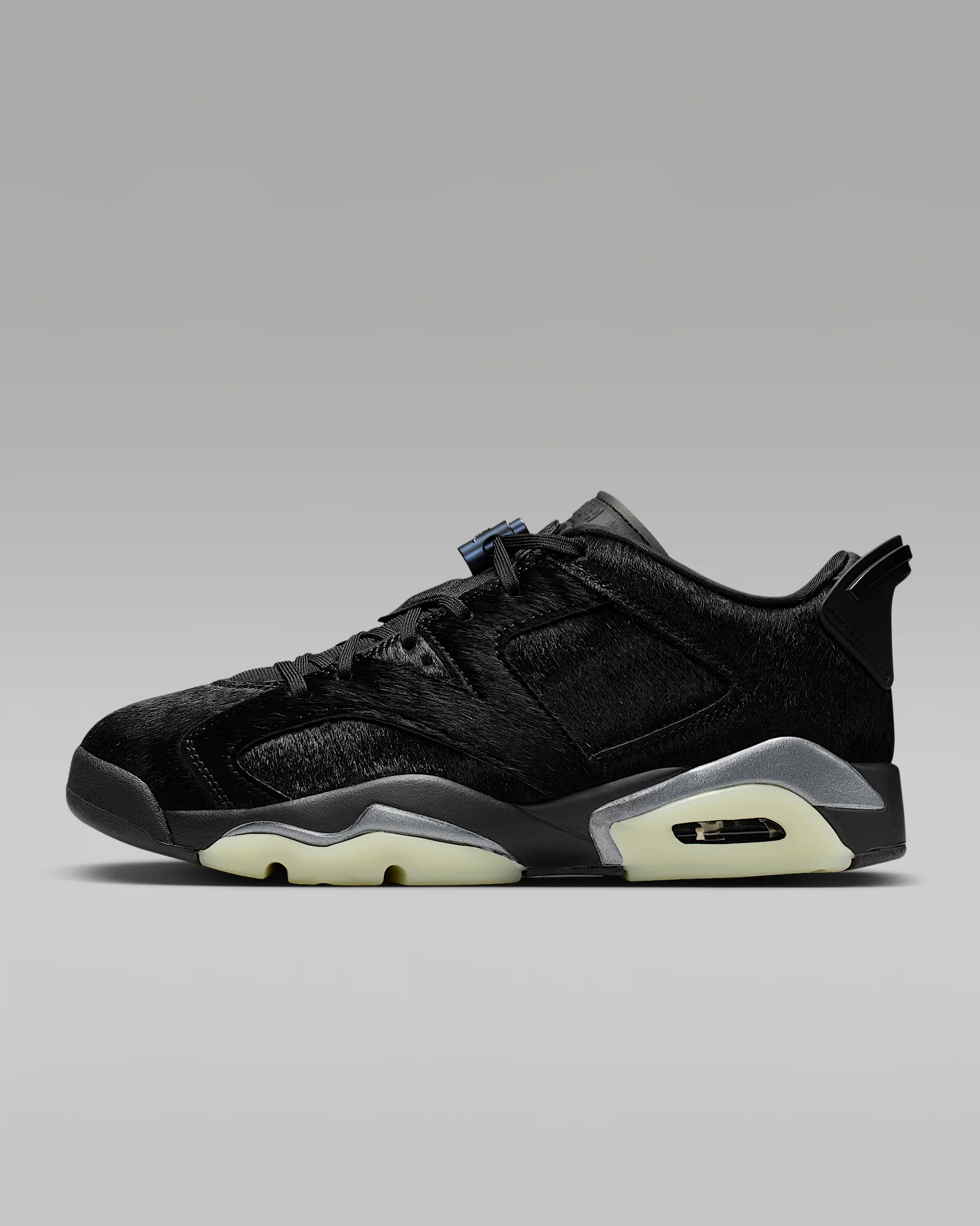 35 years in and the AJ6 still looks as good as it did when MJ won his first ring. To kick off the celebration, we present a low-top blackout take that's just for the women in the room. The whole thing's done up in premium leather and textiles. And you know those iconic details are there—from the overlays to the visible Air to the lace lock. Benefits - Air-Sole unit and foam midsole cushion every step. - Rubber in the outsole gives you everyday traction. Product Details - Shown: Black/Black/Black - Style: IO9786-001