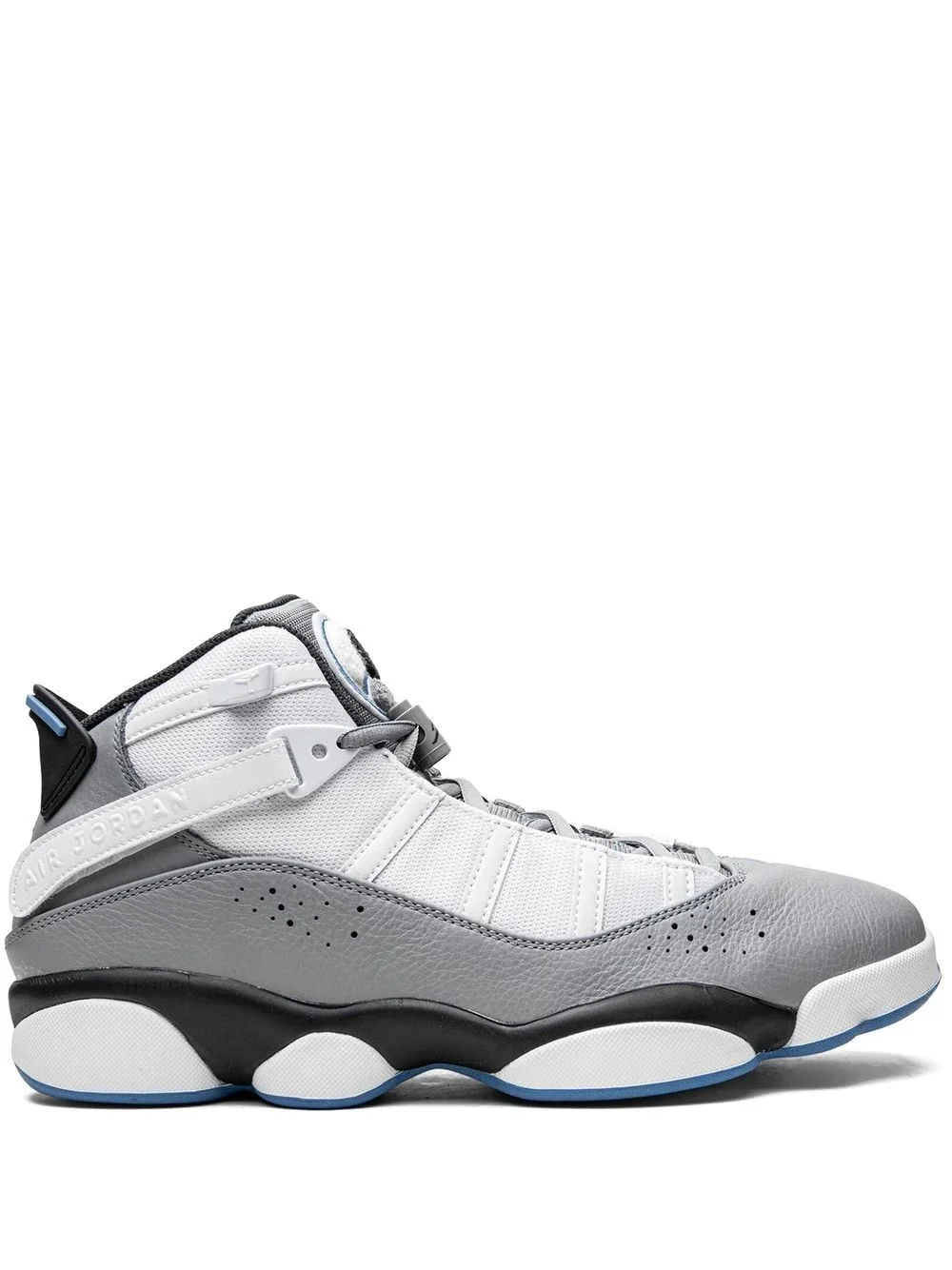 Jordan 6 Rings "Dutch Blue" sneakers The iconic Jordan 6 Rings now arrive in a white, 'Cool Grey' and 'University Blue' colourway. This high-top sneaker is crafted from leather, highlighted with a Jumpman logo at the rear and tongue, and sits atop a rubber sole for comfort and traction. Imported Composition Outer: Leather 100% Lining: Leather 100% Sole: Rubber 100%