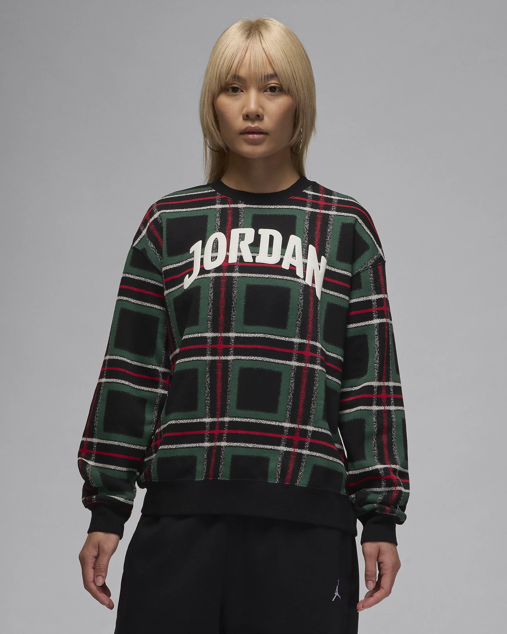 Meet Jordan's take on the season's most festive print. Smooth on the outside and brushed soft on the inside, this roomy fleece sweatshirt is an easy layer when you want a little extra warmth. Product Details - Body: 80% cotton/20% polyester. Rib: 97% cotton/3% spandex. - Ribbed cuffs and hem - Machine wash - Imported - Shown: Gorge Green/Sail - Style: HM5498-341 SIZE & FIT Model is wearing size S and is 5′7″170cm Loose fit: roomy and relaxed