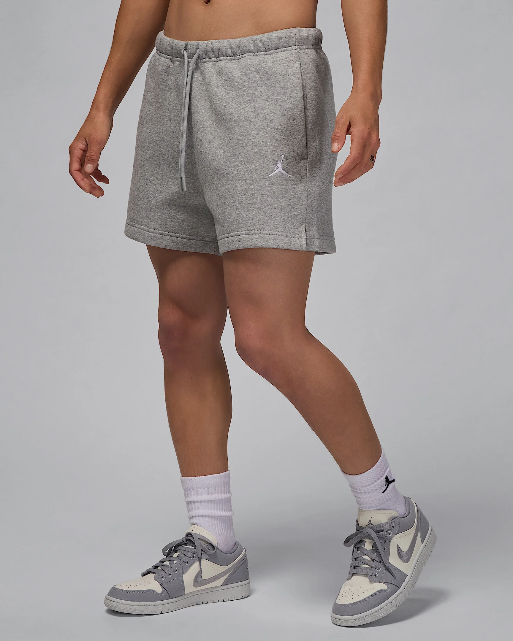Shorts you can reach for any day of the week? Yeah, we got 'em. Smooth on the outside and brushed soft on the inside, our midweight fleece gives you all the cozy feels in a relaxed cut. Plus, an elastic waistband with drawcord makes securing your fit a cinch. Product Details - Body: 80% cotton/20% polyester. Pocket bag knuckle side: 100% cotton. - Side pockets - Embroidered Jumpman - Machine Wash - Imported - Shown: Dark Grey Heather/White - Style: FV7080-063 SIZE & FIT Model is wearing size S and is 5′4″163cm Loose fit: roomy and relaxed
