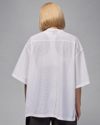 Comfortable and cool, this lightweight mesh jersey is oversized for an extra roomy fit. Athletic-inspired branding and a ribbed neckline give you classic jersey style. Benefits - Open-hole mesh is lightweight and airy. - Dropped shoulders, longer sleeves and extra room through the body give you a spacious fit. Product Details - 100% polyester - Spit hem at sides - Machine wash - Imported - Shown: White/University Blue - Style: HQ9222-100 SIZE & FIT Model is wearing size S and is 5′8″173cm Oversized fit: exaggerated and spacious