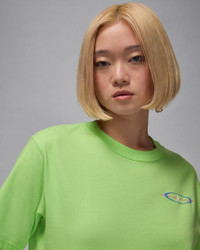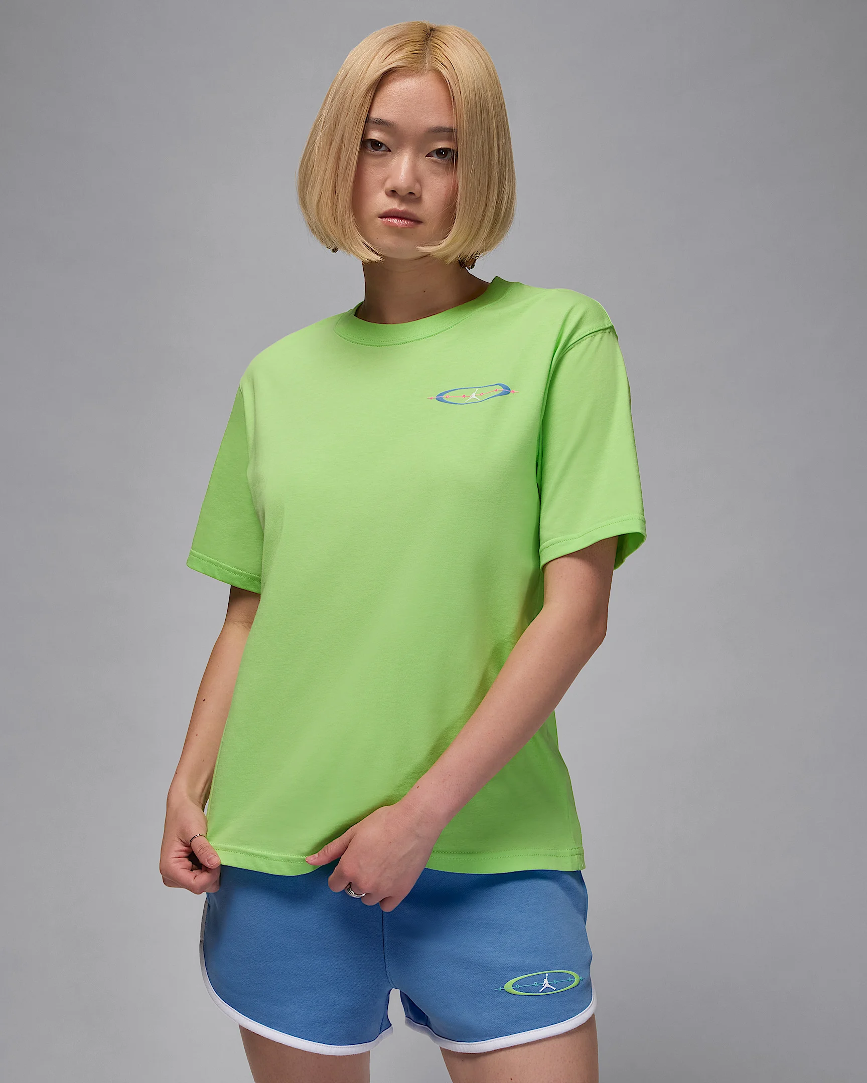 Add some retro Jordan flair to your 'fit with this roomy tee. Soft, midweight cotton keeps it feeling as good as it looks. Product Details - 100% cotton - Machine wash - Imported - Shown: Key Lime/University Blue/White - Style: HV0194-351 SIZE & FIT Model is wearing size S and is 5′8″173cm Loose fit: roomy and relaxed