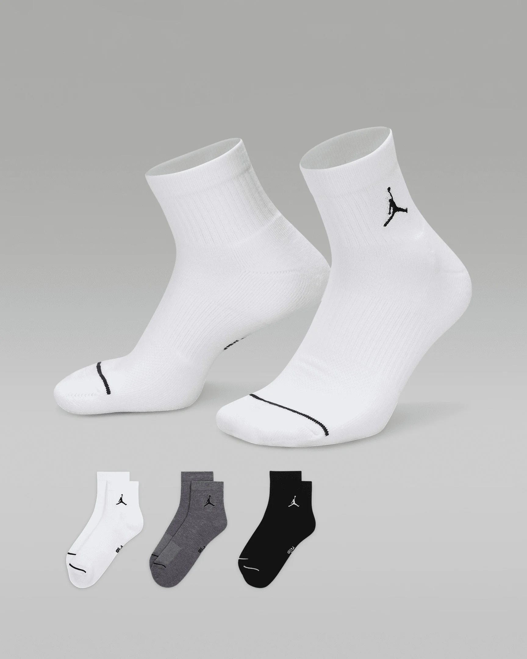 These ankle socks will keep you dry and cool with sweat-wicking fabric and breathable ankle panels. They're snug around the arch to give you that extra-supportive feel. Benefits - Snug arch feels supportive and comfortable. - Breathable panels at the top provide ventilation. - Cushioned reinforcement at toes and soles adds durability. Product Details - 97% polyester/2% spandex/1% nylon - Machine wash - Imported - Shown: Multi-Color - Style: DX9655-911
