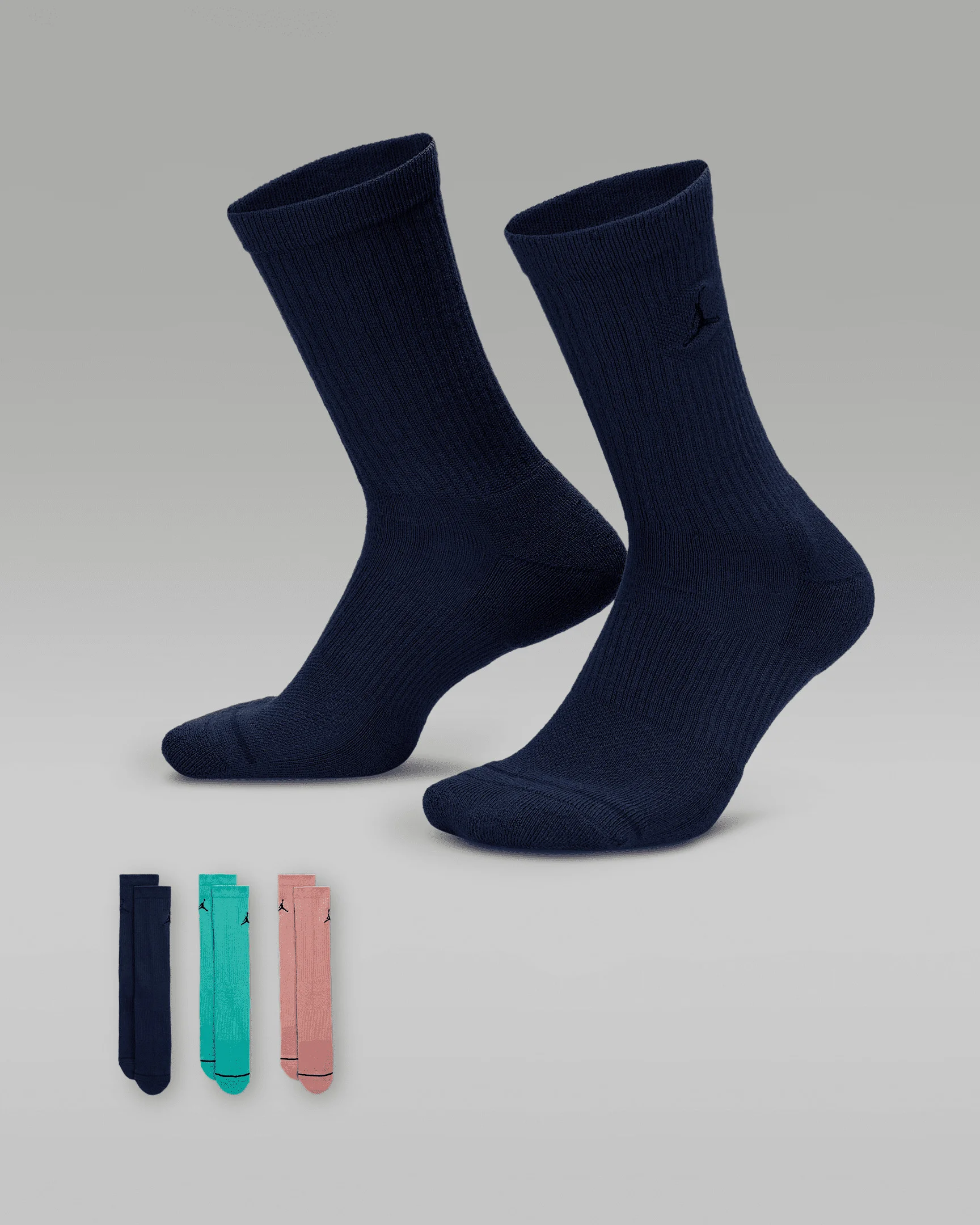 Your go-to, everyday, soft and reliable socks. Sweat-wicking technology keeps your feet cool and dry while a snug arch band feels supportive. Benefits - Cushioning under the forefoot and heel helps soften the impact of your workout. - Band around the arch feels snug and supportive. - Breathable knit pattern on top adds ventilation. - Reinforced heel and toe are made to last. Product Details - 96% polyester/3% polyurethane/1% nylon - Jumpman logo - Machine wash - Imported - Shown: Multi-Color - Style: DX9632-926