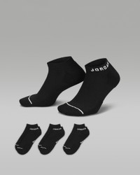 Add some comfort to your style with these no-show socks. Sweat-wicking power and breathability help keep your feet dry and cool to so you can push you through your day with full force. Benefits - Dri-FIT technology helps your feet stay dry and comfortable. - Cushioning under the forefoot and heel helps soften the impact of your workout. - Band around the arch feels snug and supportive. - Breathable knit pattern on top adds ventilation. - Reinforced heel and toe are made to last. Product Details - 97% polyester/2% spandex/1% nylon - Jordan logo - Machine Wash - Imported - Shown: Black/White - Style: DX9656-010