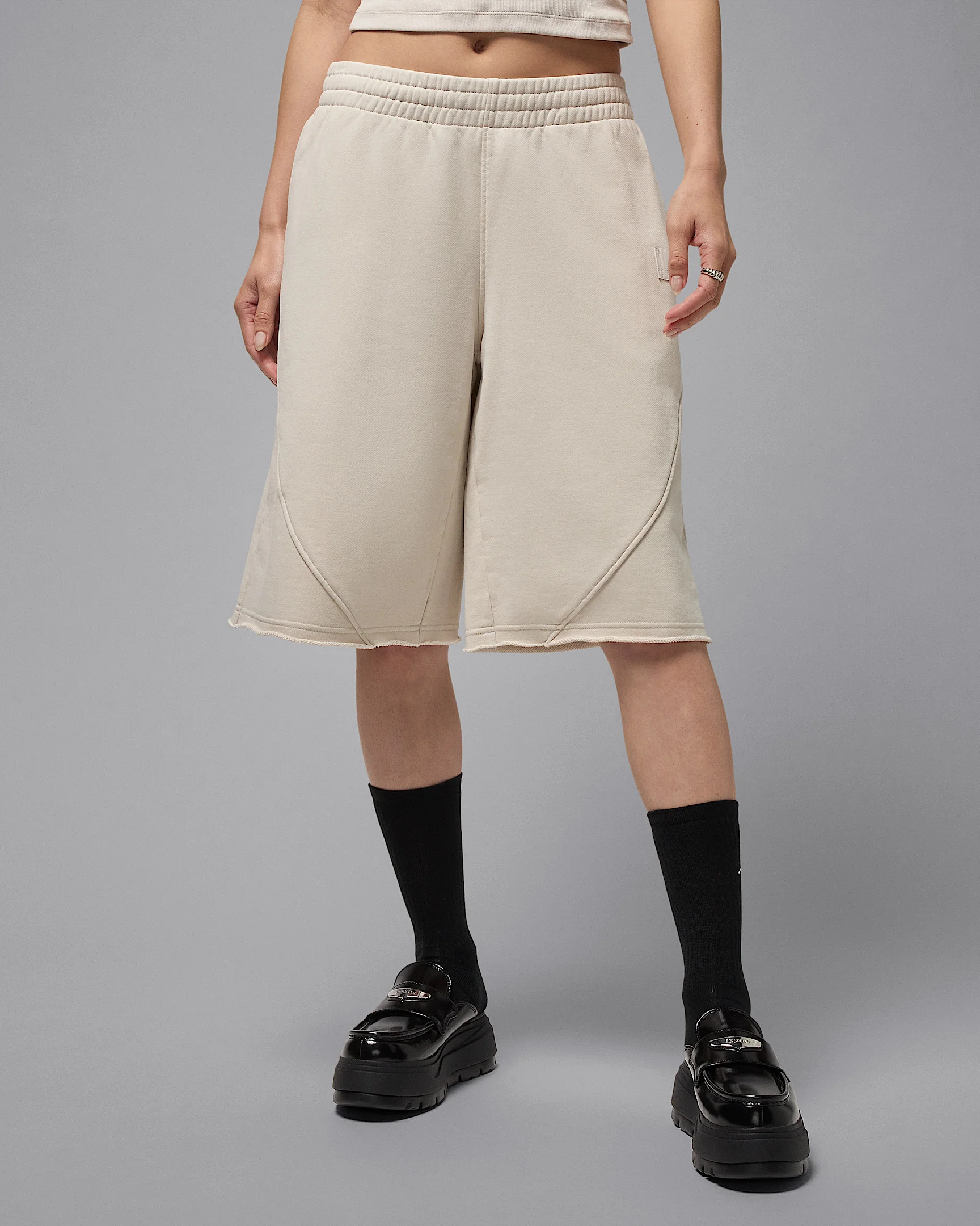 Why not go big? With a raw edge hem designed to hit below the knee, these heavyweight French terry shorts are all about bringing you colossal levels of comfort. Benefits - Densely knit with unbrushed loops on the inside, this thick French terry fabric helps keep you warm and comfortable. - Elastic waistband with drawcord lets you dial in your perfect fit. Product Details - Body: 90% cotton/10% polyester. Pocket bags: 100% cotton. - Side and back pockets - Machine wash - Imported - Shown: Light Orewood Brown/Rattan - Style: IB9858-104 SIZE & FIT Model is wearing size S and is 5′8″173cm Loose fit: roomy and relaxed