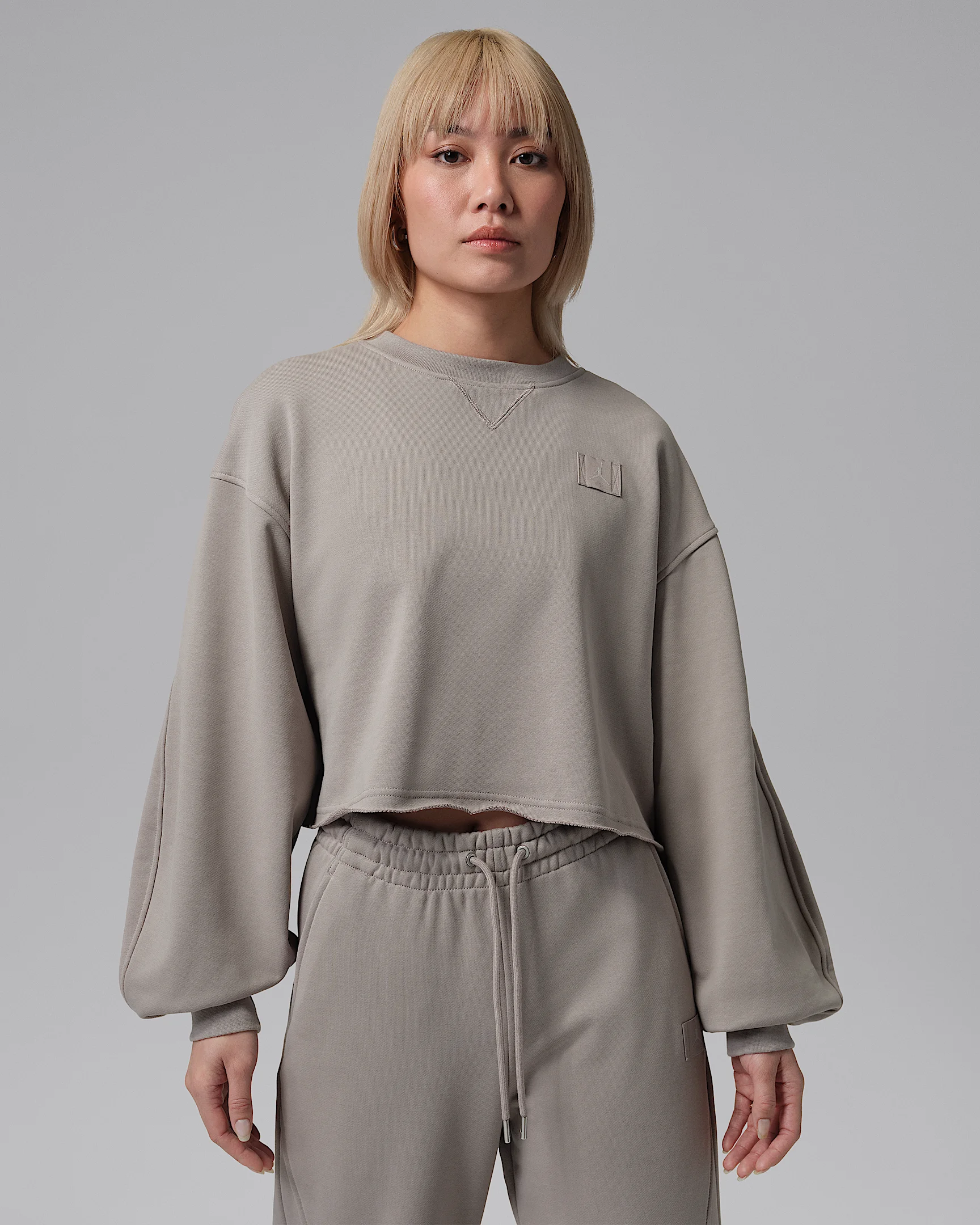 Mod-crop, loose fit—your new fave sweatshirt? It's made of heavyweight fleece for big comfort, so you feel as good as you look. Product Details - 90% cotton, 10% polyester - Machine wash - Imported - Shown: Enigma Stone/Cobblestone - Style: IF1006-016 SIZE & FIT Model is wearing size S and is 5′8″173cm Loose fit: roomy and relaxed