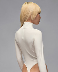 This peachy soft bodysuit brings you a base layer with some attitude. Hidden zipper and minimal snaps maintain your comfort while a high hip cut and turtleneck give you serious streetwear style. Product Details - Body: 83% polyester, 17% spandex, Gusset Lining: 100% polyester - Machine wash - Imported - Shown: Sail - Style: HV0350-133 SIZE & FIT Tight fit: snug and form-fitting