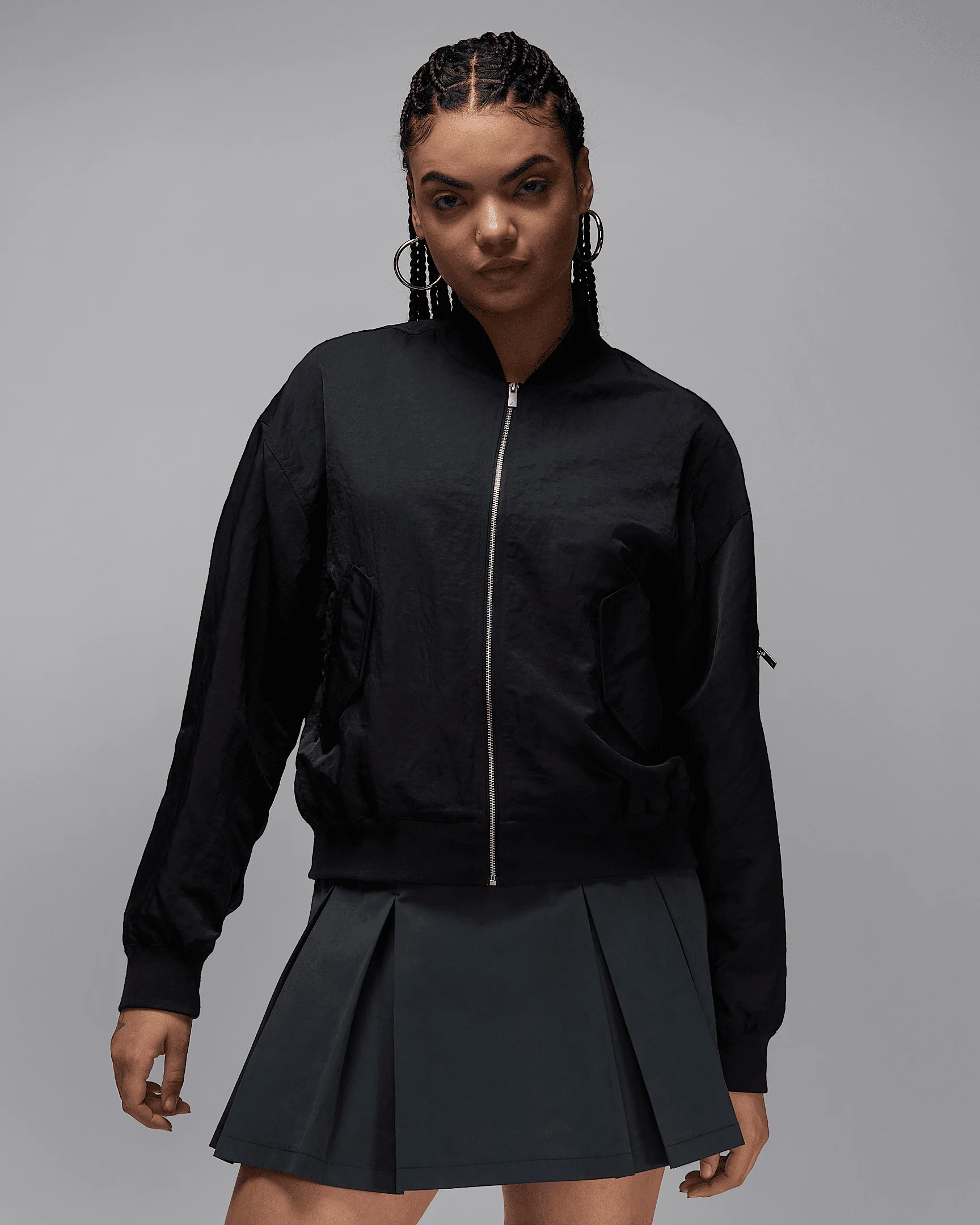Whatever the season, our roomy Renegade jacket is a surefire silhouette. This lightweight iteration pairs a water-repellent woven shell and breathable mesh lining with classic Jordan details like diamond-shaped pockets. Product Details - Body: 100% nylon. Rib: 98% cotton/2% spandex. Lining: 100% polyester. - Ribbed cuffs, collar and hem - Front pockets - Zippered sleeve pocket - Machine wash - Imported - Shown: Black - Style: HJ0544-010 SIZE & FIT Model is wearing size S and is 5′9″175cm Loose fit: roomy and relaxed