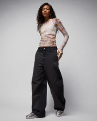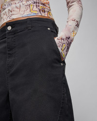 We're throwing it back to '91 with woven twill pants that pay tribute to the year MJ won his first championship title, rounding out his already impressive list of wins. Designed to feel roomy through the hips and legs, they feature waist adjusters at the hips so you can modify your fit. Wear 'em loose for a low-rise look or cinched tight for a more tailored style. Benefits - Woven twill fabric is durable and structured with just a touch of stretch. - Hand-sprayed wash treatment gives every pair of pants a unique look. - Adjusters on the waistband let you play with the fit. - Zip fly and belt loops give you a traditional look. Product Details - 98% cotton/2% spandex - Side and back pockets - Machine wash - Imported - Shown: Black - Style: HQ9193-010 SIZE & FIT Model is wearing size S and is 5′11″180cm Loose fit: roomy and relaxed Fl length: hits below ankle