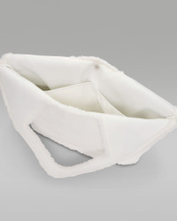 Made of plush high-pile fleece fabric in a unique pentagon shape, this statement tote bag will elevate almost any fit. The spacious main compartment has hidden magnetized snap closures, multiple pockets inside to help you keep your things organized, and the faux leather bottom panel has protective metal feet to help prolong the life of the bag. Product Details - 12"H (main bag)/22"H (full height) x 22.5"L (opening)/13.75"L (bottom) x 5"D. Handle Drop: 9.5" - Main Body/Lining: 100% polyester. Bottom Panel: 100% polyurethane - Spot Clean - Imported - Shown: Sail - Style: WA9167-782