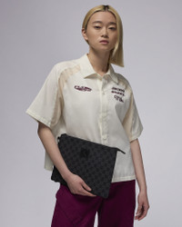 The classic clutch, Jumpman style. Featuring a detachable faux leather wrist strap for versatile carry options, this pouch is finished with an allover woven pattern for an elevated look. Benefits - The zippered main compartment has an inner slip pocket for cards, ID's and other smaller flat items. - The pouch is fully lined for durability. Product Details - 8.75"H x 12"L x 0.4"D; Strap Length: 7" - Main Body: 100% Polyester; Wrist Strap: 100% Polyurethane - Spot Clean - Imported - Shown: Black - Style: MM0897-KK2