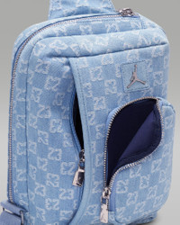 Made of timeless, pre-washed denim and finished with an allover woven monogram pattern that perfectly complements your Jordans, this elevated sling bag fits the bill for when you only need the essentials. The zippered main compartment has zip pockets inside to help you stay organized and the pockets on the front provide you with quick and easy access to your cards, phone, or other smaller items. Finish with an adjustable strap for crossbody or over-the-shoulder wear and you get a bag that's great for everyday wear. Benefits - Inside the bag, there's a clip that can hold your key ring. Product Details - 11"H x 7.75"L x 2.25"D; Strap Length: 52" (longest) - Main Body: 97% Cotton, 2% Rayon, 1% Polyester; Lining: 100% Polyester - Spot Clean - Imported - Shown: Denim - Style: MA9062-571